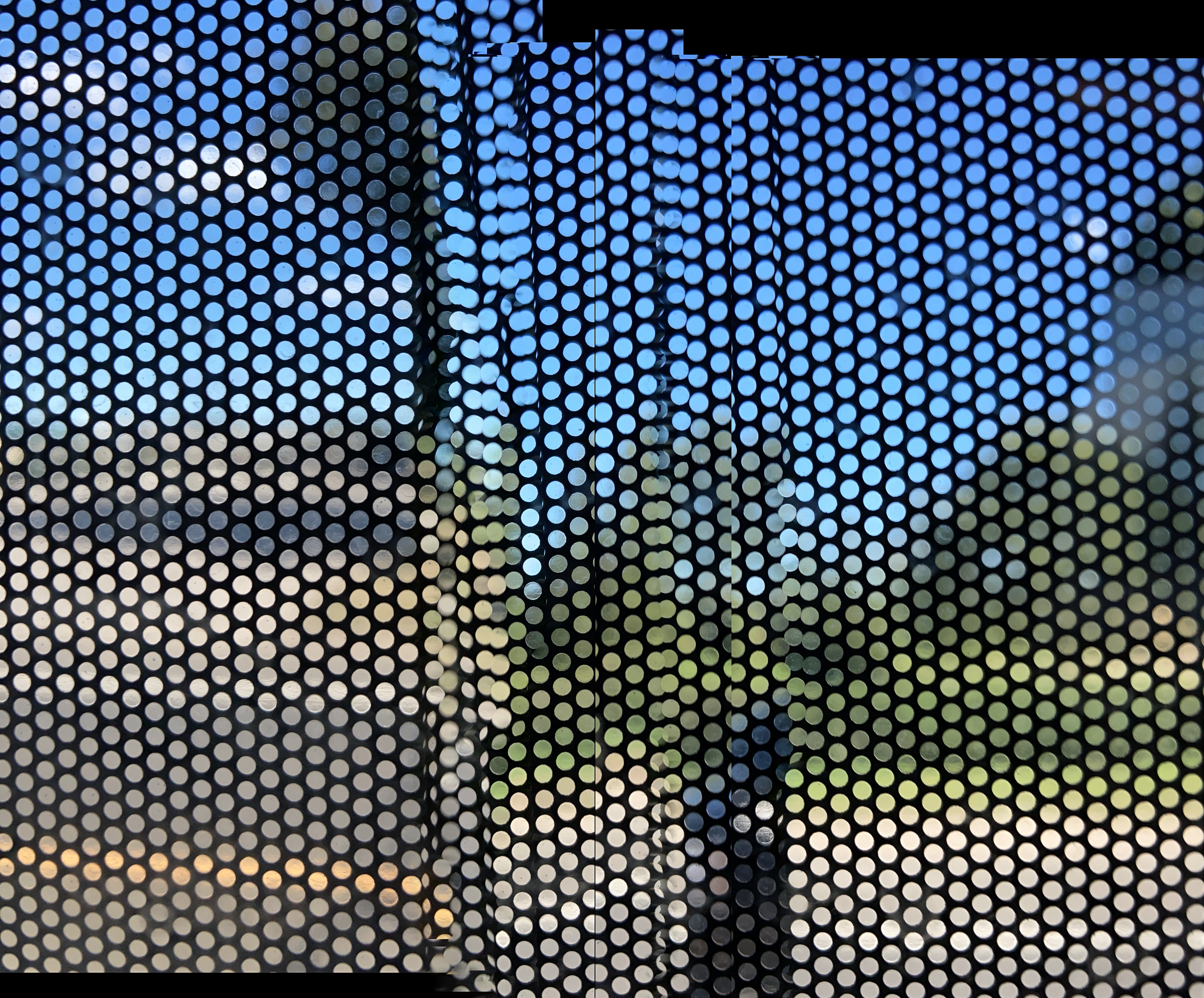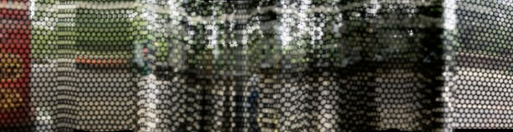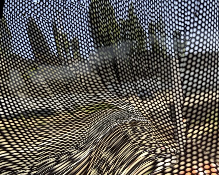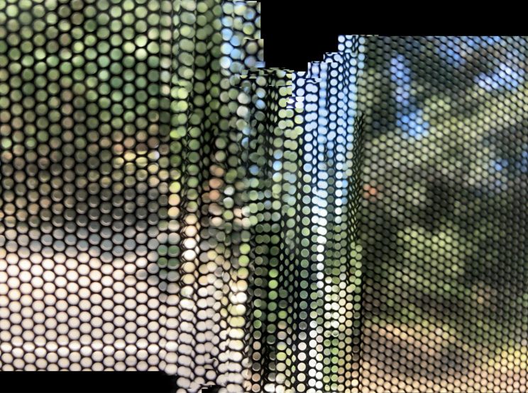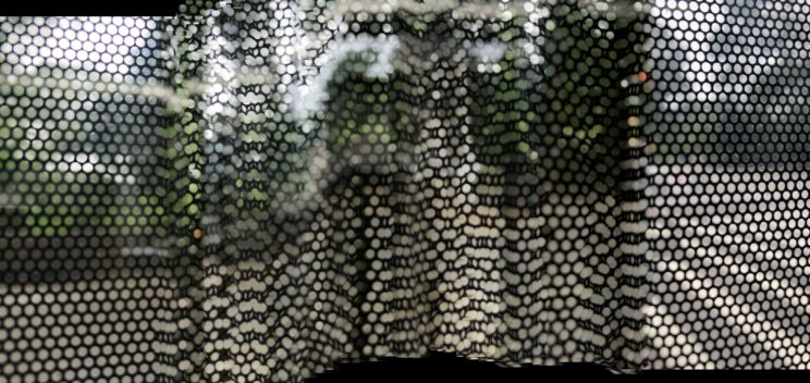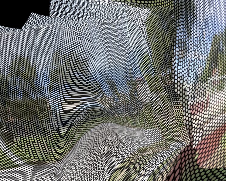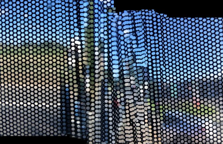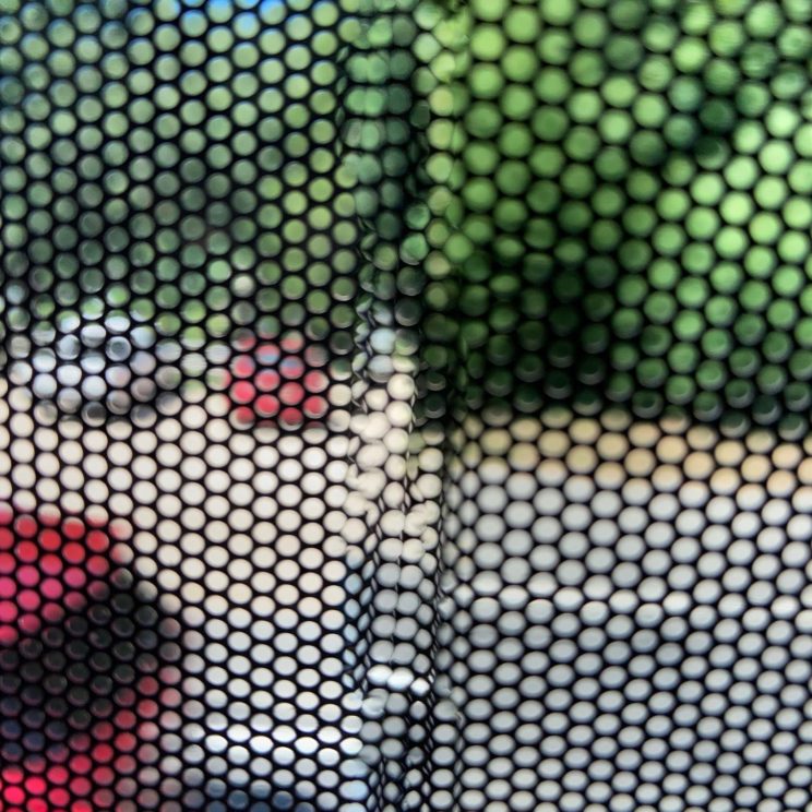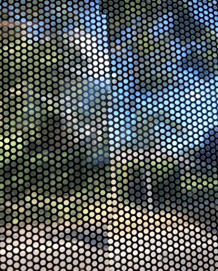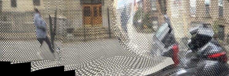 These photos are made through the window of a bus whose exterior is covered with an ad one can see through. Focussed on the ad’s dot pattern, the camera produces abundant and exuberant so-called malfunctions while rendering the scenery. These images are unaltered.