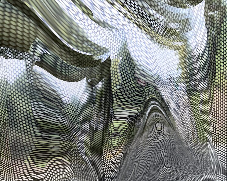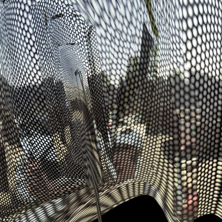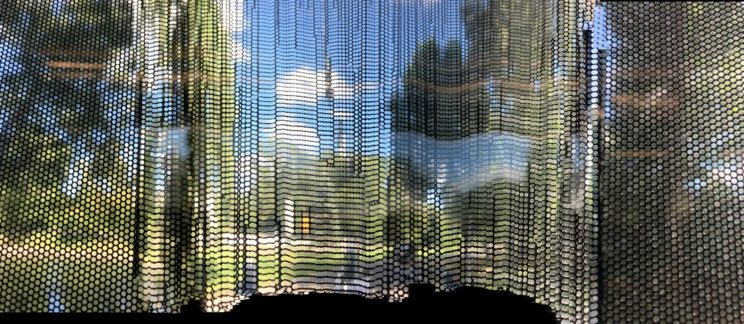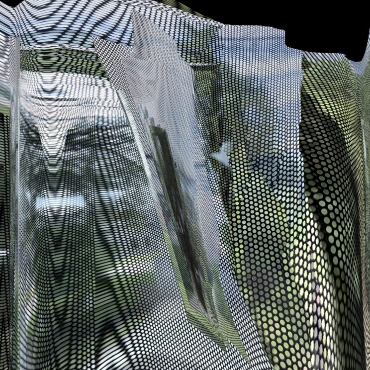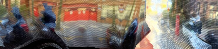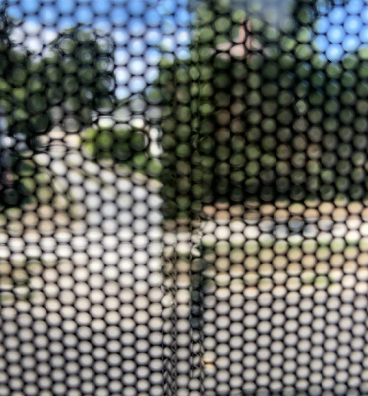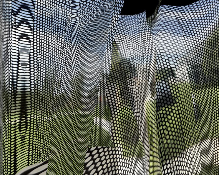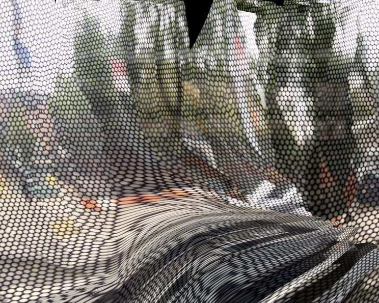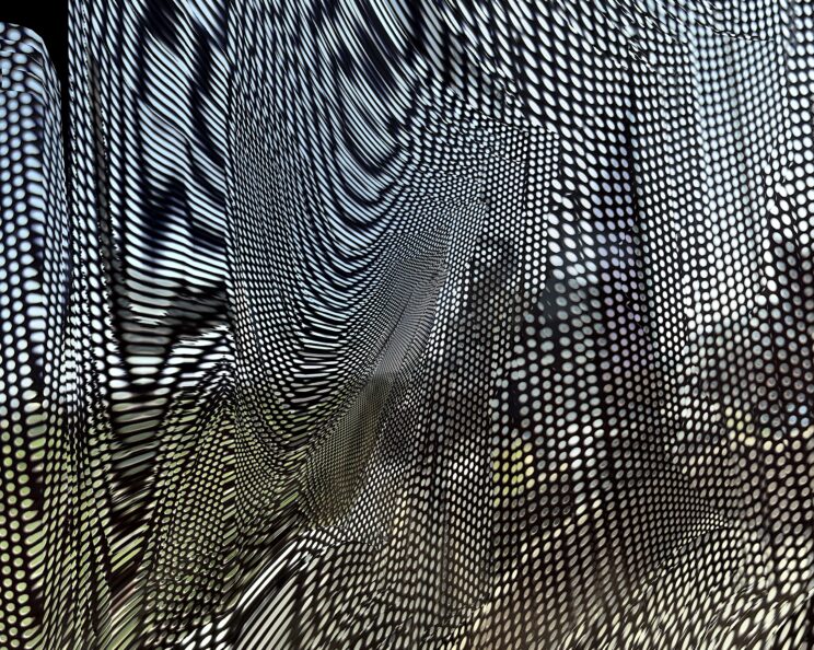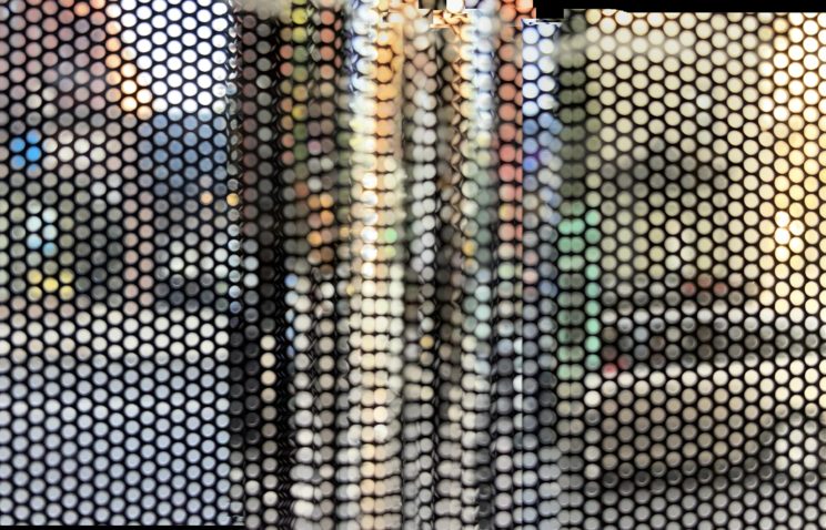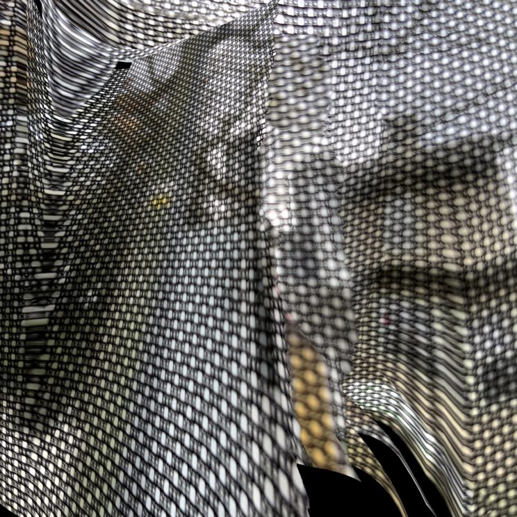 These photos are made through the window of a bus whose exterior is covered with an ad one can see through. Focussed on the ad’s dot pattern, the camera produces abundant and exuberant so-called malfunctions while rendering the scenery. These images are unaltered.