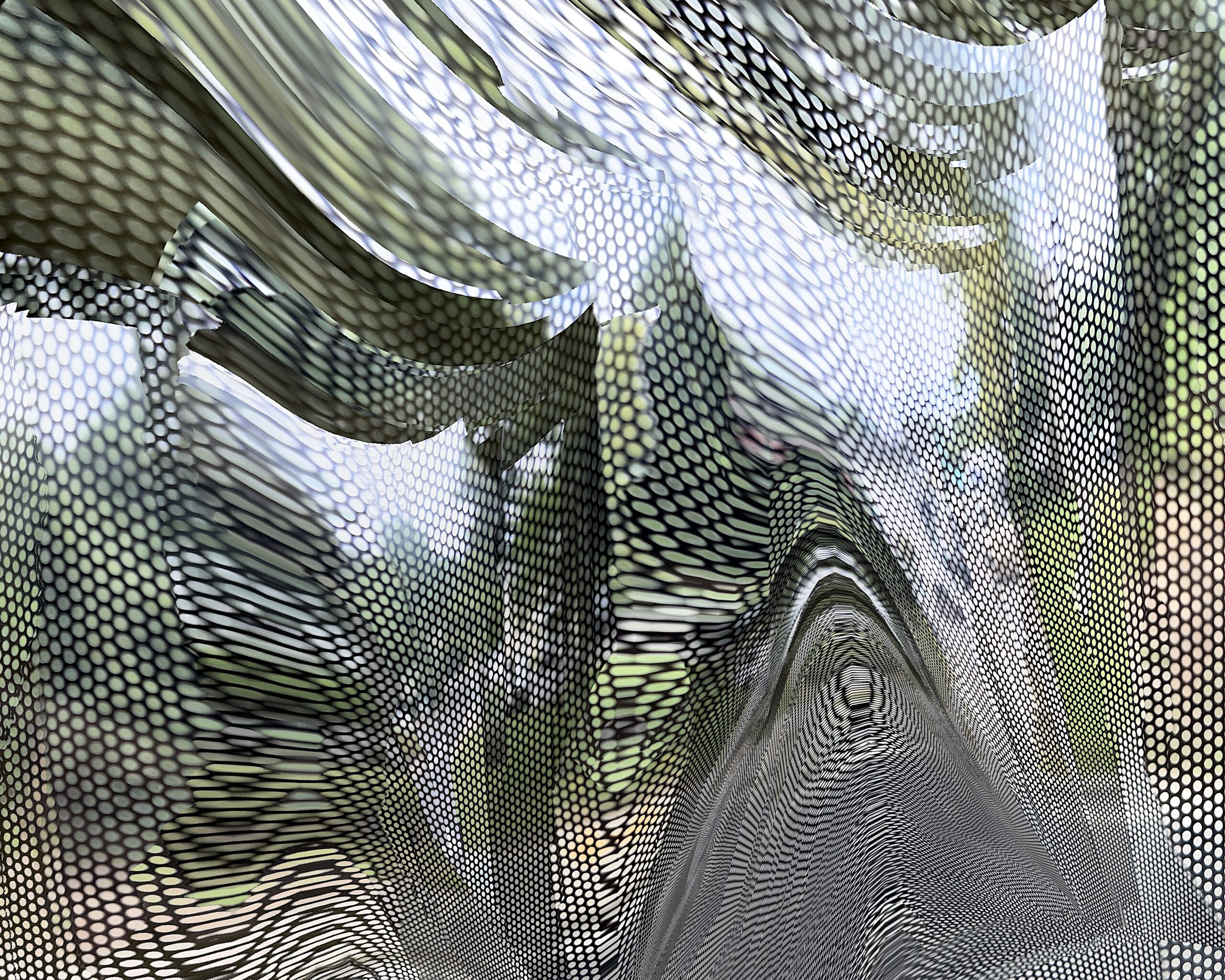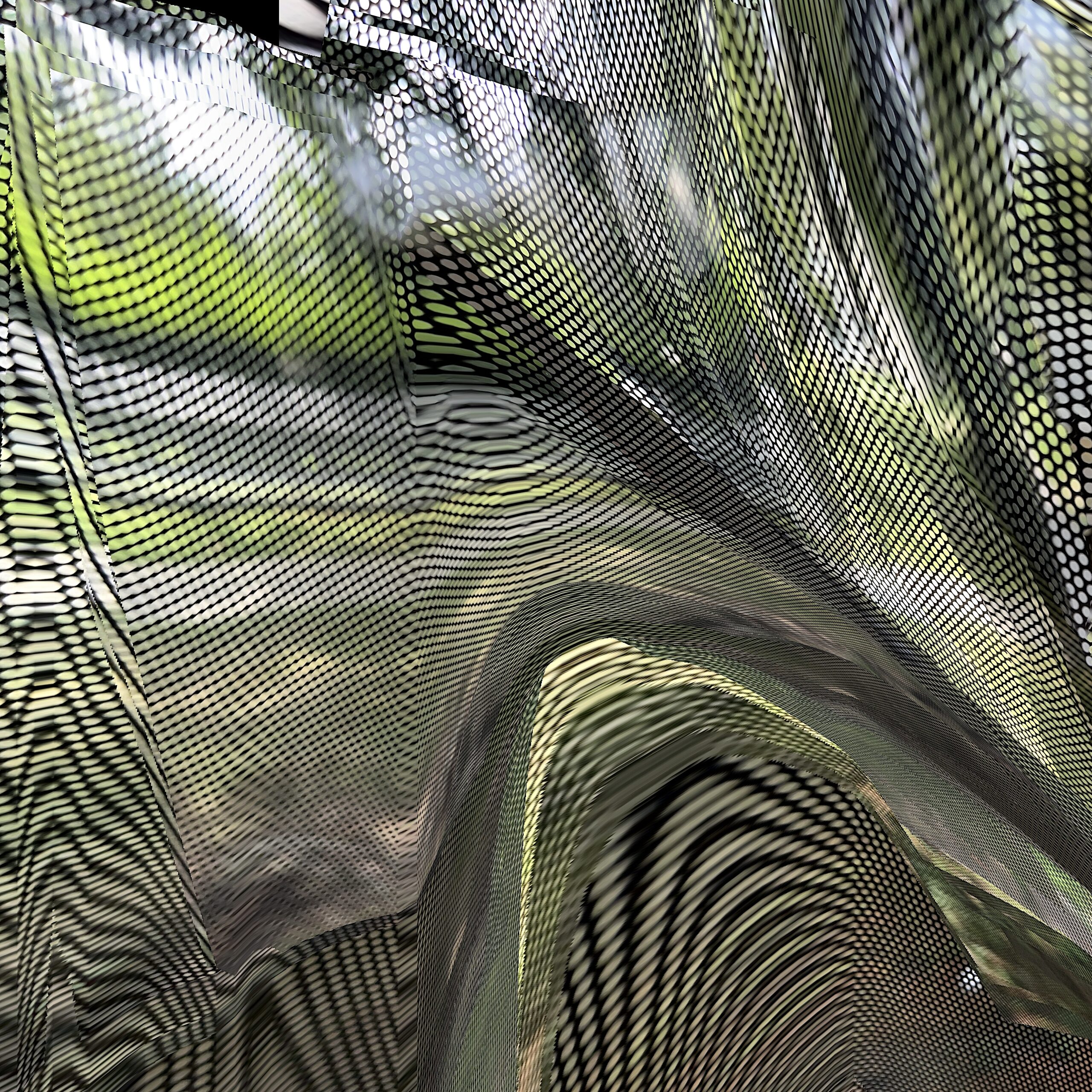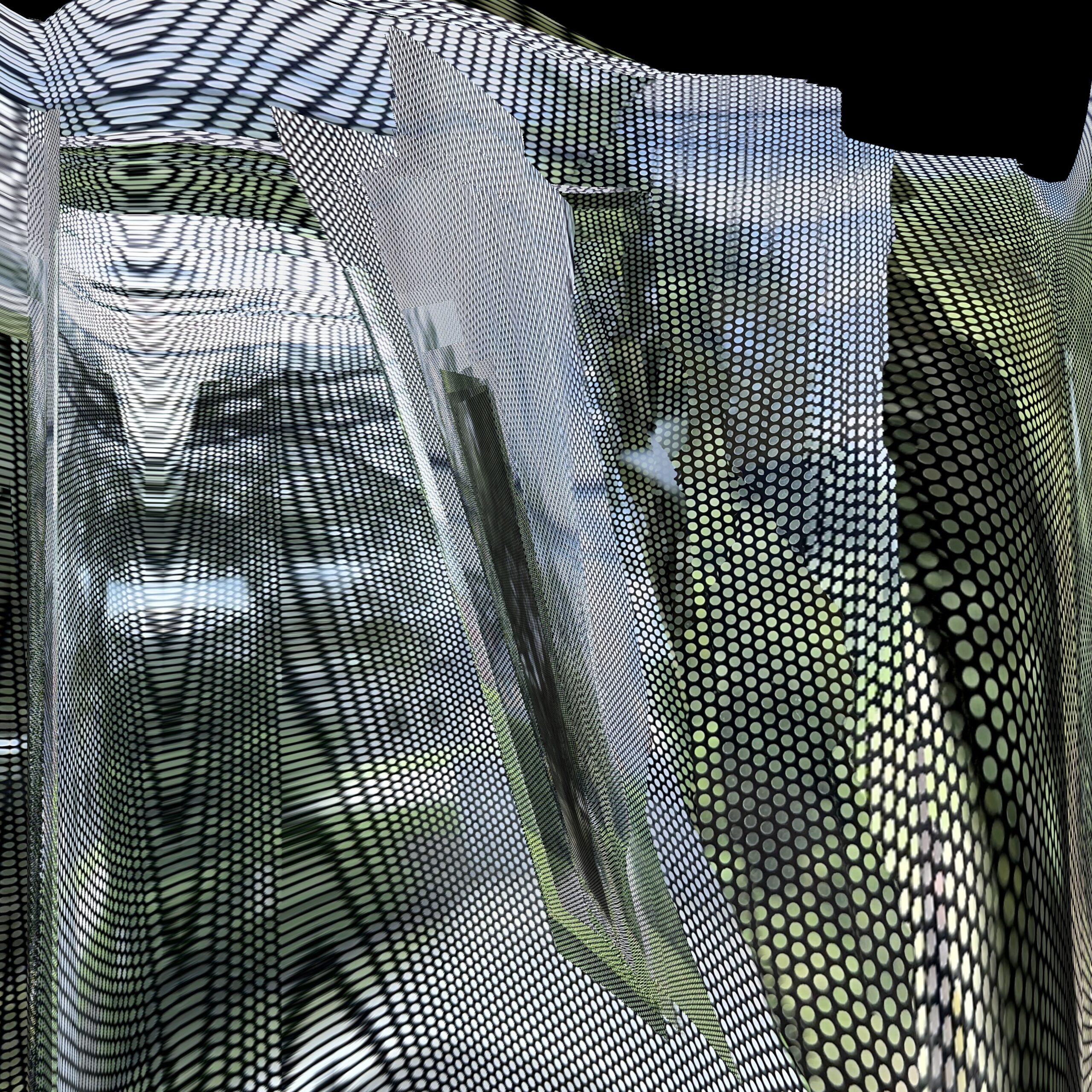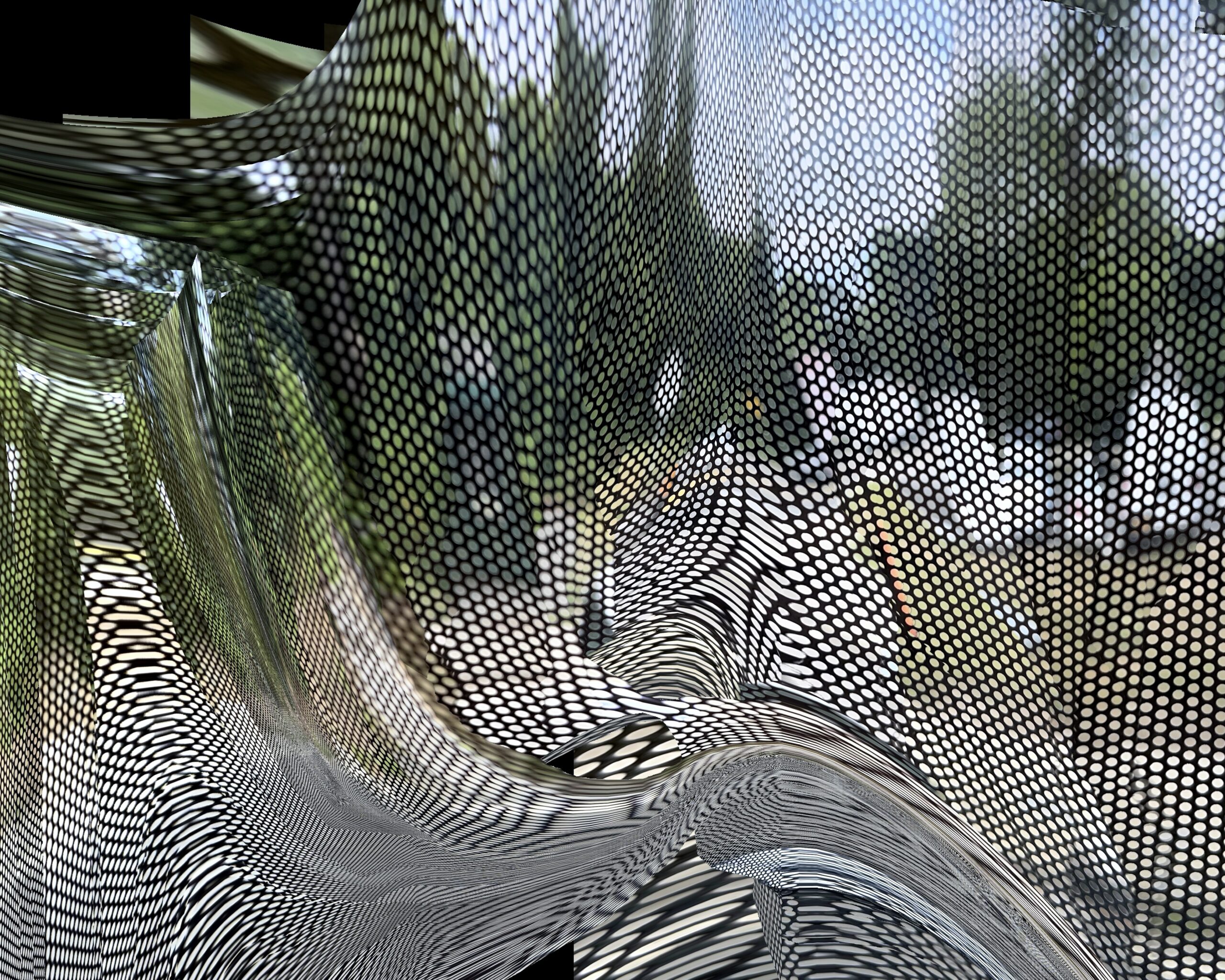 These photos are made through the window of a bus whose exterior is covered with an ad one can see through. Focussed on the ad’s dot pattern, the camera produces abundant and exuberant so-called malfunctions while rendering the scenery. These images are unaltered.